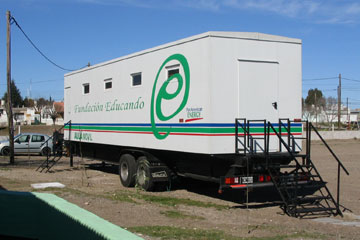 Aulas y salas de capacitaciónDiseñadas para adaptarse a las más severas condiciones climáticas y de transporte. Estos módulos permiten llegar a los lugares más recónditos brindando igualdad de posibilidades de acceso a la información y maximizando la inversión realizada. Son además una buena opción como reemplazo temporal mientras se realizan obras definitivas o refacciones. OpcionesLas aulas se equipan con todo el material necesario para brindar servicios de excelencia, existe una gran variedad de configuraciones posible, talleres para enseñanza técnica, salas de capacitación informática, bibliotecas itinerantes, cines y salas de proyeción itinerantes entre otras. Pueden estar equipadas con proyectores, pantallas, computadoras, materiales didácticos, etc. ImágenesAplicacionesModelos similares |